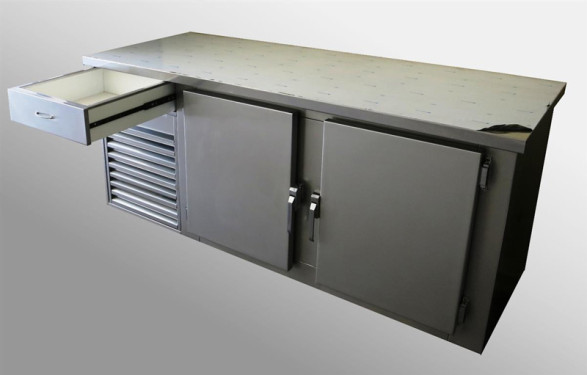 - Puertas tipo placa con marco de aluminio, burlete magnético y bisagras de ciere automático·