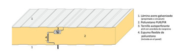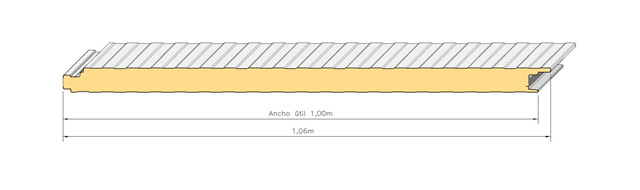 Panel metálico con núcleo aislante de poliuretano de alta densidad,inyectado en línea continua; con lámina de acero galvanizado prepintada en ambas caras, Provisto con sistema de fijación oculta, ideal para obras que requieren soluciones de aislación y estética al mismo tiempo.